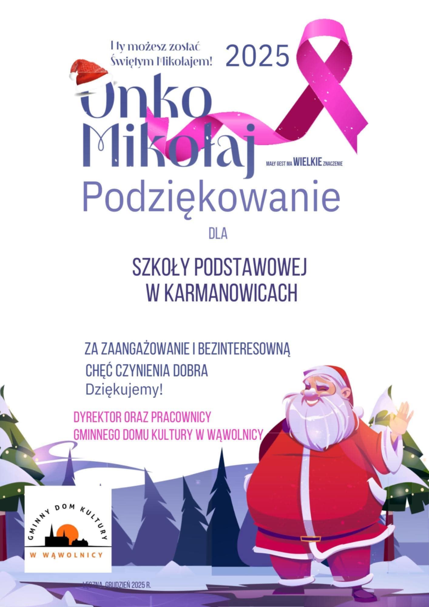 Kolejny rok nasz szkolny wolontariat pod opieką pani Kasi Targońskiej współpracował z Gminnym Ośrodkiem Kultury w Wąwolnicy w ramach akcji OnkoMikołajki, w której przeprowadziliśmy mikołajkową zbiórkę prezentów dla dzieci z oddziału onkologii Uniwersyteckiego Szpitala Dziecięcego w Lublinie. Wszystkim darczyńcom serdecznie dziękujemy💕