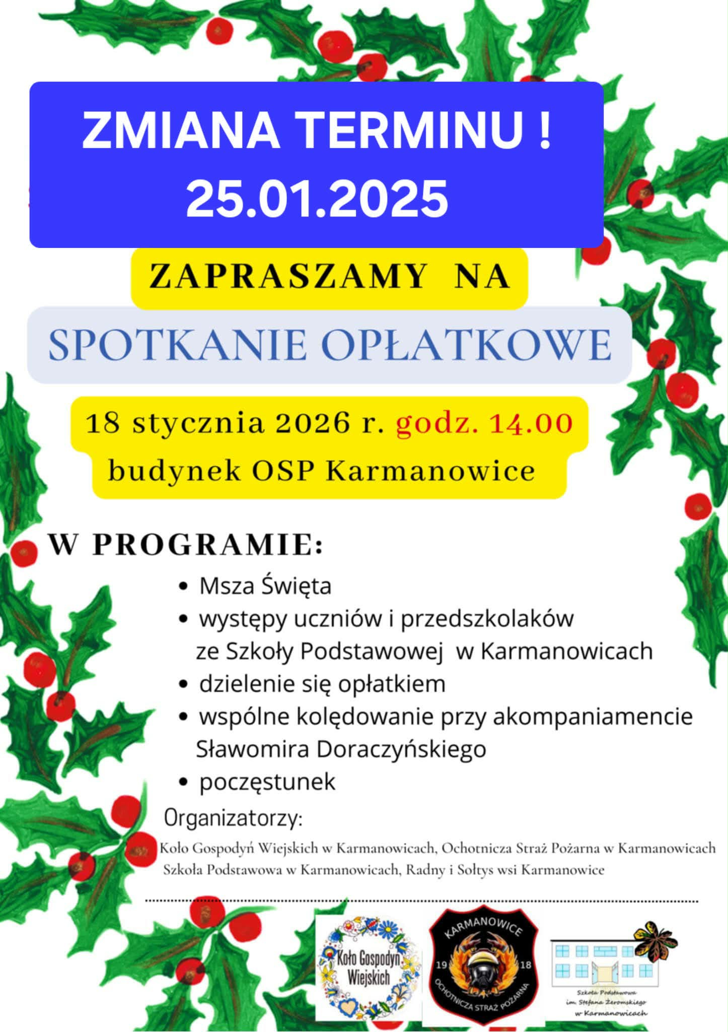 W związku z tym spotkanie opłatkowe zostaje odwołane.
